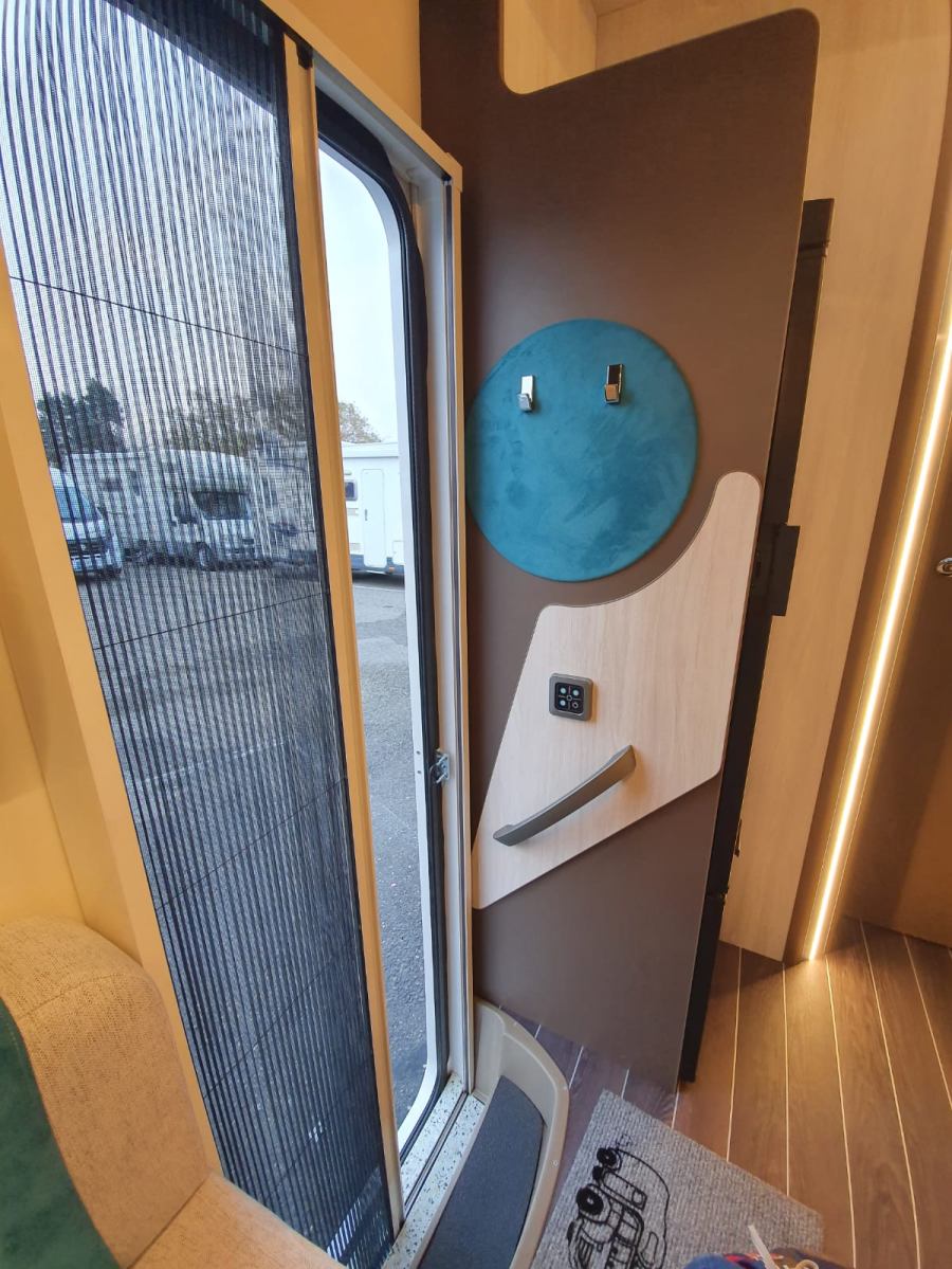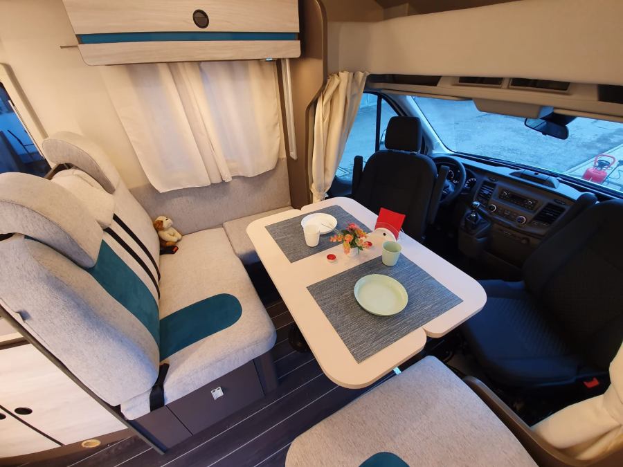 Giubbotto rifrangente, chiave per la bombola, bombole gas, cavo elettrico 220 V, 2 cunei di livellamento, estintore di bordo, tubo acqua, liquido sanitario per WC, carta igienica, autoradio MP3/USB, manuale del camperista + istruzioni uso mezzo, oscuranti per vetri cabina, portolano di Plein Air (elenco aree attrezzate camper), climatizzatore cabina, vetri elettrici, specchietti retrovisori elettrici, veranda, porta bici o garage, ABS, antifurto perimetrale, presa USB per telefoni.